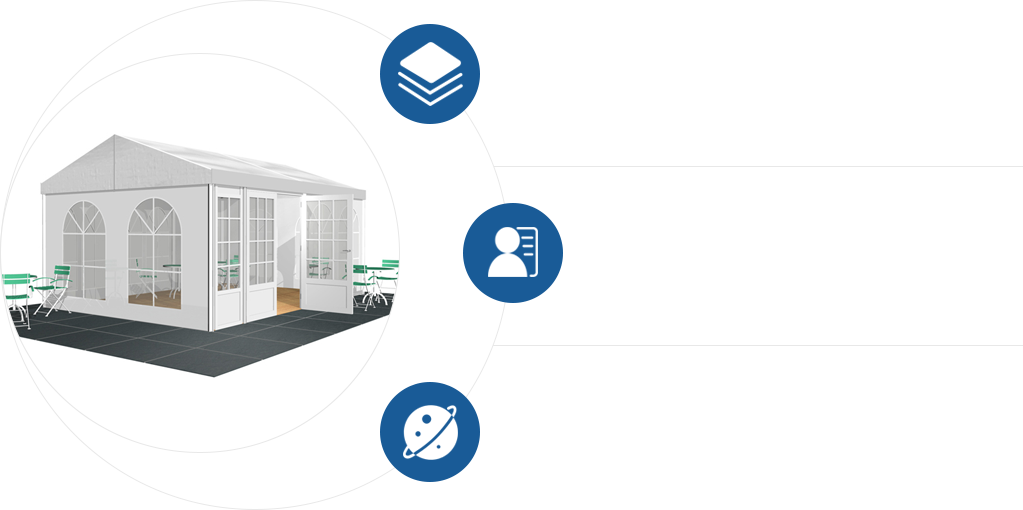 包括尖頂、人字頂、弧形頂等全系列的各種尺寸,以及空調、地板、照明、消防等配套系統