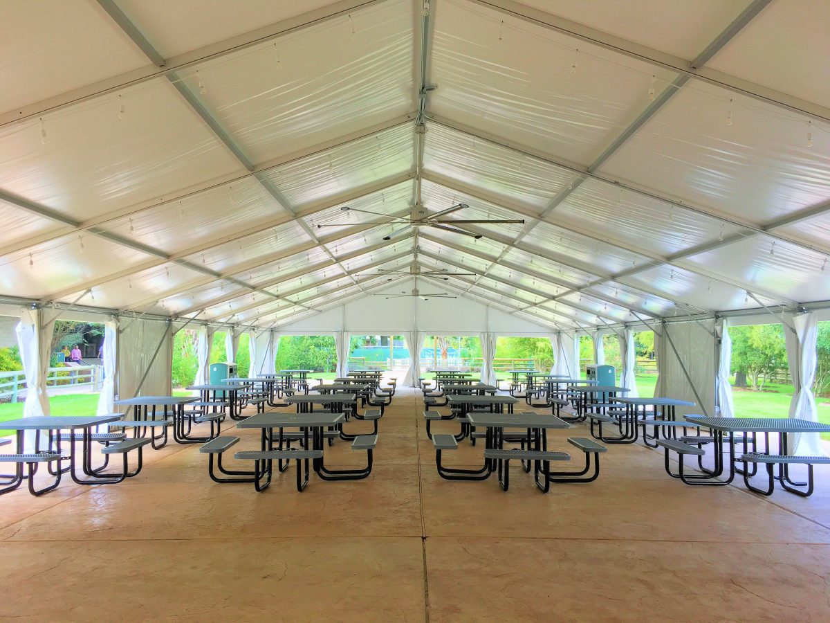 這座鋁合金篷房的設計尺寸十分引人注目,寬度達 50 米,長度為 60 米,邊高 6 米。
