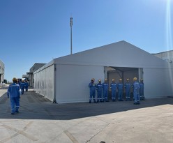 這座工業(yè)鋁合金篷房用作倉儲,因為沿海抗風11級